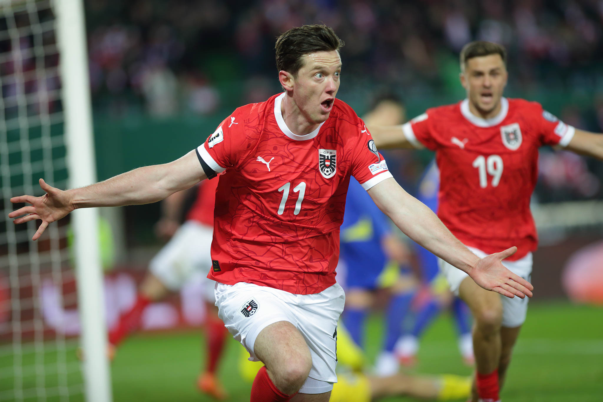 Michael Gregoritsch jubelt nach seinem Ausgleichstor gegen Bosnien und Herzegowina. Ernst-Happel-Stadion, Wien, 18. November 2025